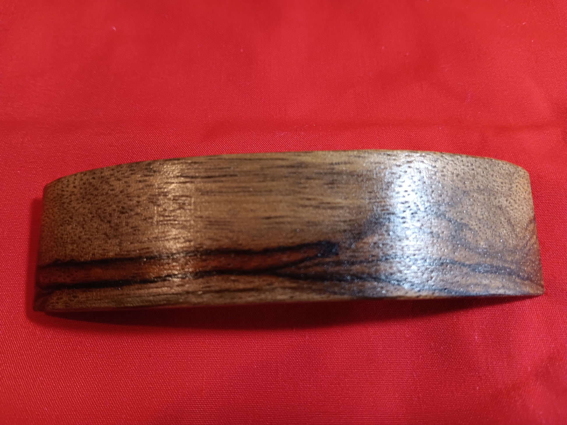 Introducing our handmade Black Limba Hair Barrette with French Clip. Made from rare Black Limba wood from Tropical Western Africa, each barrette features unique greyish-brown color with dark grey to black streaks. The sturdy French clip securely holds even the thickest hair. Elevate your hair accessory collection with this one-of-a-kind barrette.
