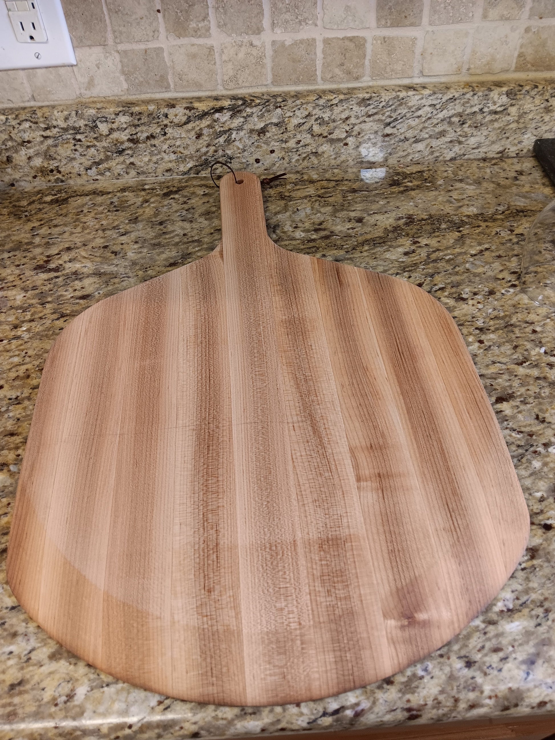 Expertly crafted from premium maple wood, this handmade Pizza Peal is an essential tool for any pizza lover. With a generous size of 15"x23", it's perfect for transferring your homemade pizzas from oven to table. The leather strap adds a touch of elegance while providing easy storage. Elevate your pizza-making game with this high-quality peal. Has a bonus the Pizza Peal can double has a charcuterie or serving board.