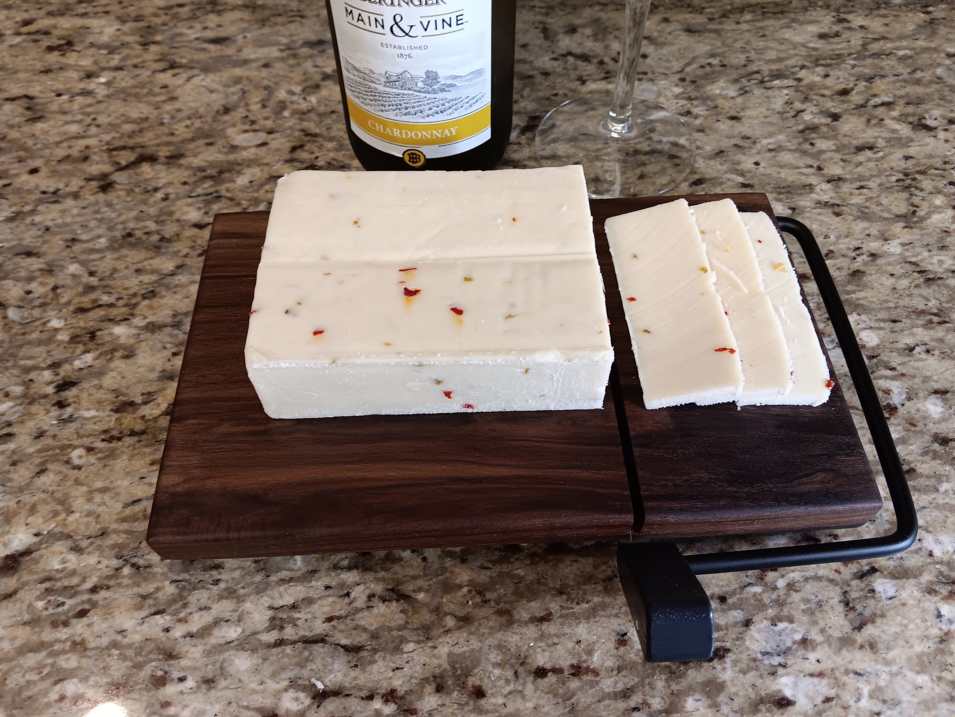 Crafted from the finest Eastern United States Walnut wood, our handmade cheese slicer is not only visually stunning, but also durable and functional. The high-quality steel bar and durable slicing wire make slicing cheese a breeze, while the non-mar feet ensure your countertops stay unscathed. Slice with ease and style with our Walnut Cheese Slicer.